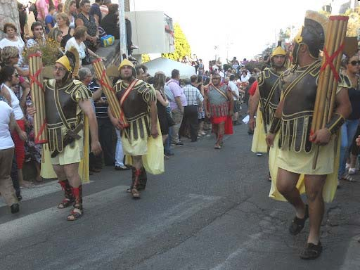 figuranti, vestiti da soldati romani, tradizionalmente chiamati " Giudei "; infine all'altro capo
